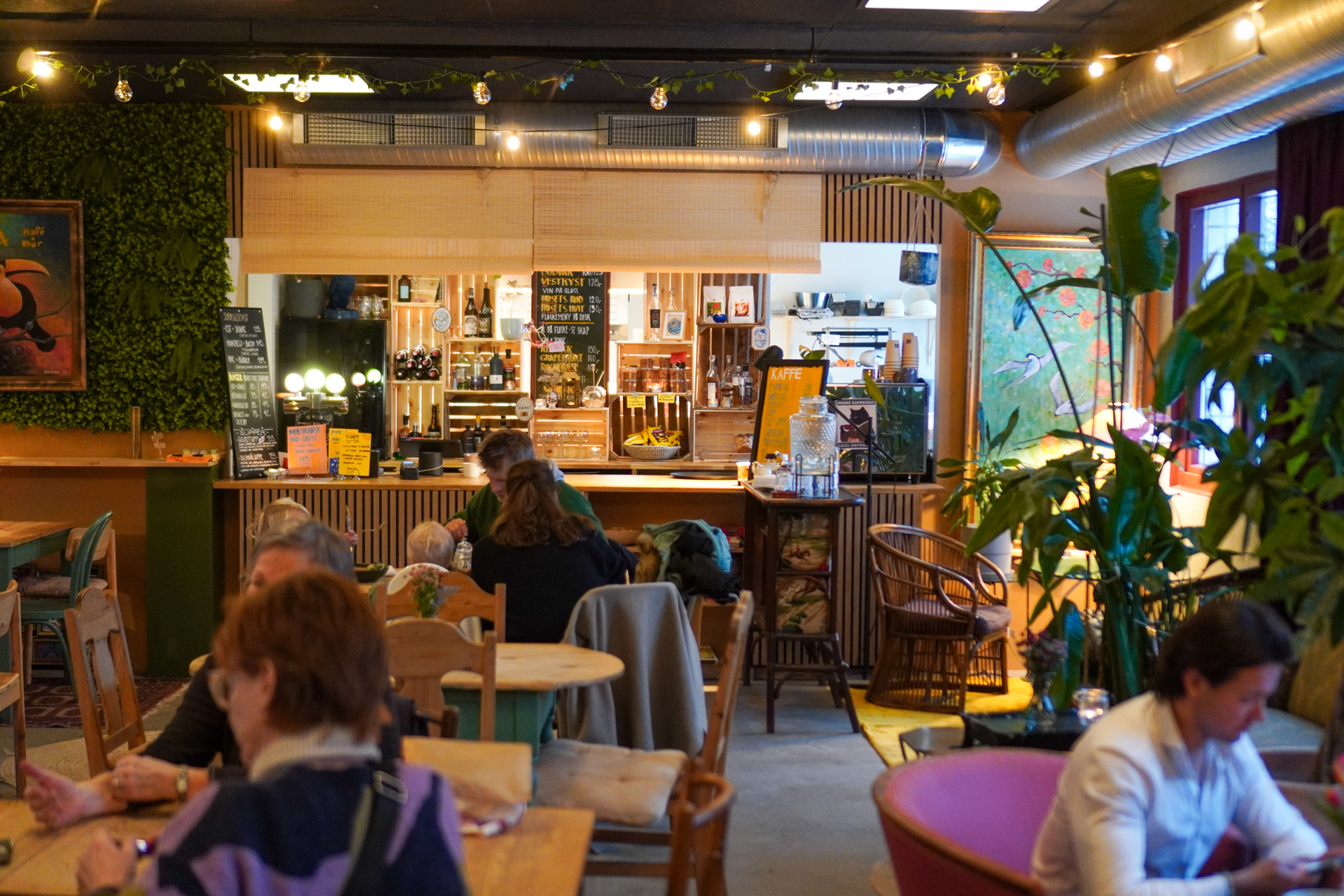 Papegøye, originally named “Neongrut”, is an all-vegan cafè in the day and a wine bar in the evening. Papegøye means “parrot” in Norwegian, a bird that can “speak many languages and gather all sorts of colours” and it will best represent the customers and shop, according to the owners. Hence the name change. Seating area Located at the heart of Tøyen, the café features a rustic interior design on the verge of urban ruin, with a large naked brick wall running behind the service counter, vintage furniture and green plants. Thanks to the high-ceiling and carefully matched Ikea lamps, the space feels airy and bright. ...